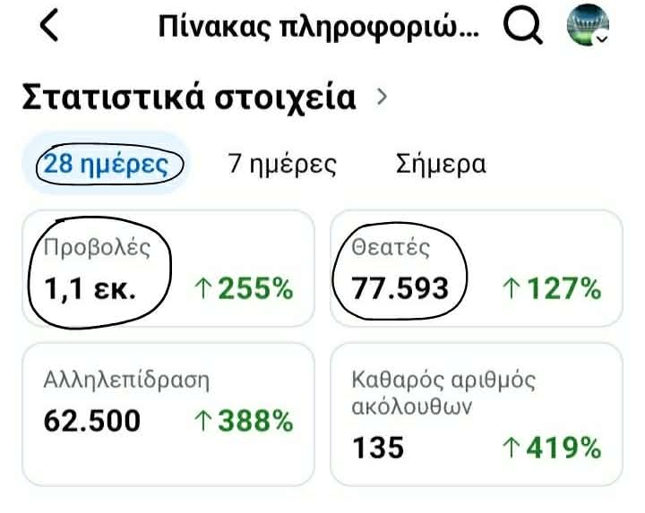 Τις τελευταίες 28 μέρες, όπως βλέπετε και στη φωτογραφία που σας παραθέτουμε, το goalnews-karditsa είχε πάνω από 1 εκατομμύριο προβολές και 77.593 θεατές!
