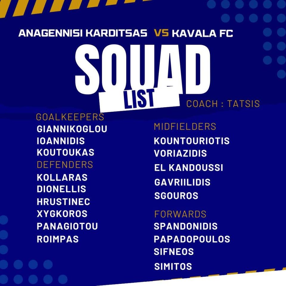 Αναλυτικά, η αποστολή της Καβάλας για τον αυριανό αγώνα πρωταθλήματος με την Αναγέννηση Καρδίτσας.