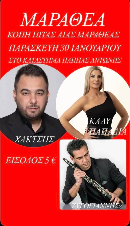 Την Παρασκευή το βράδυ (30/1), ο Αίας Μαραθέας θα κόψει την πίτα του στο κατάστημα του Αντώνη Παππά στη Μαραθέα Καρδίτσας.