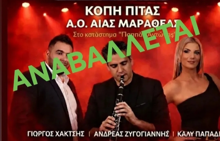 Η οικογένεια του Αίαντα Μαραθέας εκφράζει τα θερμά συλλυπητήρια στους συγγενείς των 12 αδικοχαμένων ψυχών. Η κοπή πίτας αναβάλλεται και θα πραγματοποιηθεί με νέα ημερομηνία 6/2/2026.