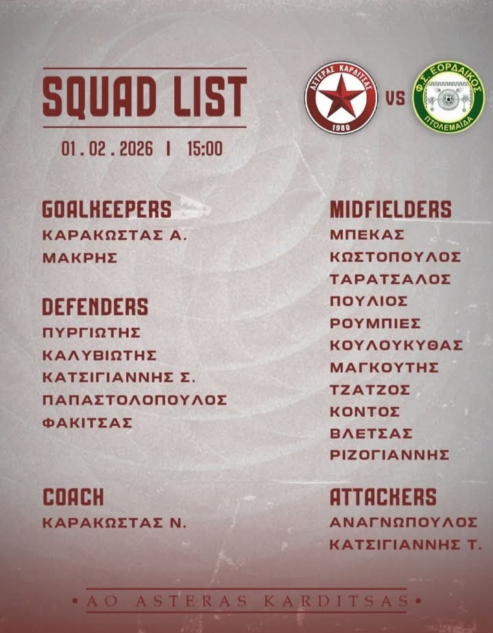 Σημαντικό παιχνίδι στο γήπεδο της Φαναρίου εκεί όπου ο Αστέρας Καρδίτσας αντιμετωπίζει την ομάδα του Εορδαϊκου. Η νίκη να αποτελεί μονόδρομο για τους ποδοσφαιριστές του Νίκου Καρακώστα.