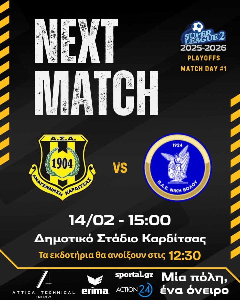Η ΠΑΕ Αναγέννηση Καρδίτσας σχετικά με την αναμέτρηση της 1ης αγωνιστικής των Playoffs του Α’ ομίλου της Super League 2 με την Νίκη Βόλου (14/02, 15:00) ανακοινώνει τα εξής: