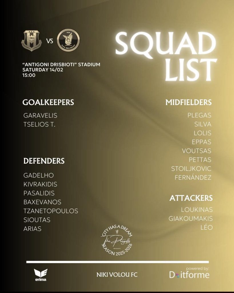 Η αποστολή της Νίκης Βόλου για την αυριανή (14/2, 15:00) εκτός έδρας αναμέτρησή της, με αντίπαλο την Αναγέννηση Καρδίτσας!