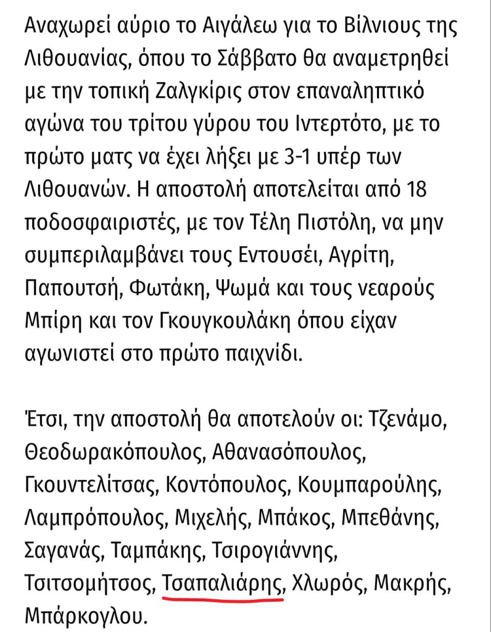 Όταν ο Γιώργος Τσαπαλιάρης με καταγωγή από το Ζαΐμι Καρδίτσας, ήταν στην αποστολή του Αιγάλεω για τον εκτός έδρας αγώνα με την Ζαλγκίρις στη Λιθουανία για το Κύπελλο Ιντερτότο!