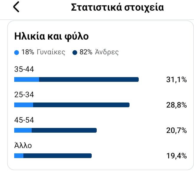Τα στατιστικά στοιχεία σε ότι αφορά τους Άντρες – Γυναίκες που μπαίνουν στην σελίδα μας την ηλικία τους και από την περιοχή από την οποία μας παρακολουθούν.
